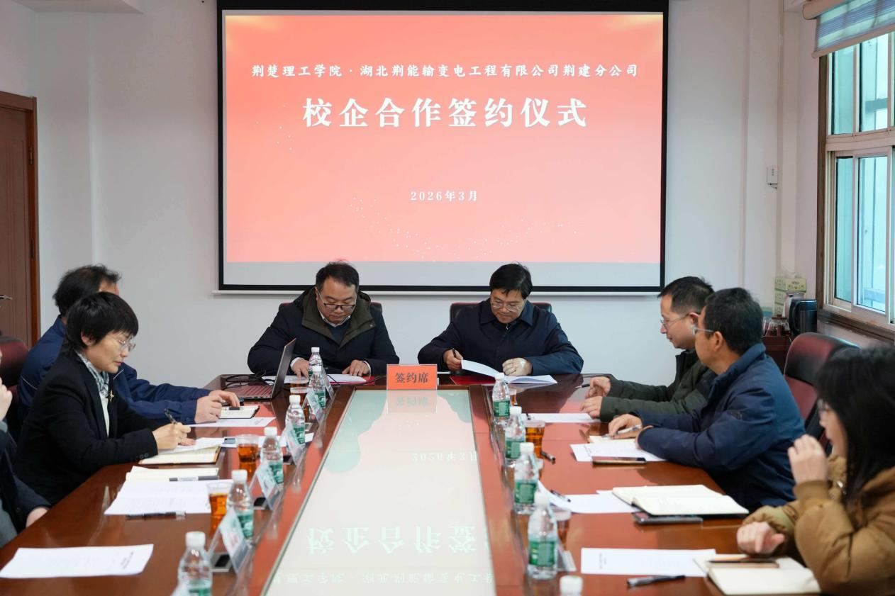 3月18日,荆楚理工学院与国网荆能荆建分公司举行“实践教学与科技创新基地”签约暨授牌仪式。双方将以此为契机,共筑校企协同育人新高地,共谋电力行业创新发展新篇章。国网荆门供电公司三级职员阮飞、人事部部长苏琴,国网荆能荆建分公司总经理、党总支副书记皮志军,院长唐文涛等校企双方代表出席仪式。