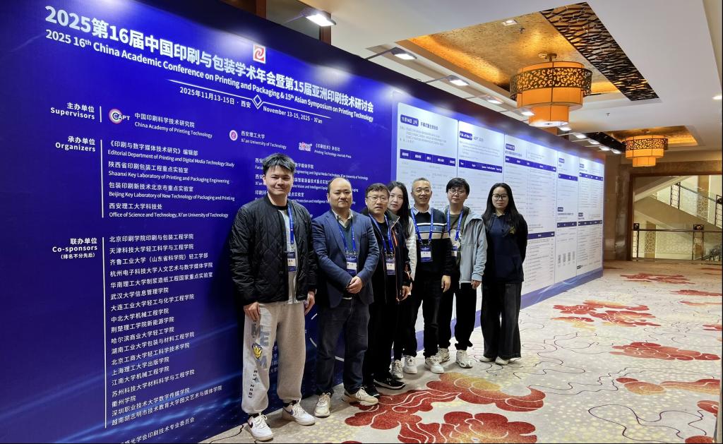 近日,第16届中国印刷与包装学术年会暨第15届亚洲印刷技术研讨会(2025年11月13日至15日)在西安隆重举行。荆楚理工学院作为会议联办单位之一,由新能源学院黄少云、陈良哲、王红、罗意、罗文奇、王君六位博士青年教师和硕士研究生涂倩组成的代表团受邀参会。